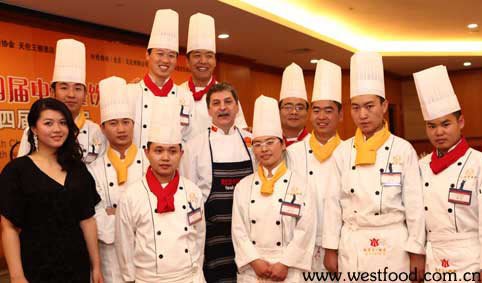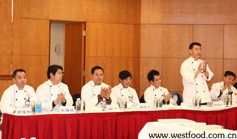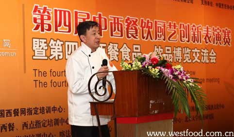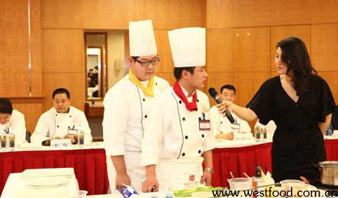 ![]() 参赛选手讲解制作的菜品 本次活动特意邀请外籍名厨MARCO.MAZZEI先生现场表演厨艺秀。 MARCO.MAZZEI先生:瑞士国籍,1979年开始从事餐饮行业,先后供职多高国家和城市的大饭店,包括德国、加勒比海地区、日本东京、韩国、新加坡、澳大利亚等,1999年来到中国,先供职于国际俱乐部饭店,为很多著名人士服务,比如:美国前总统克林顿、布什,英国前首相布莱尔,著名艺术家帕瓦罗蒂、成龙、周润发等。 外籍名厨MARCO.MAZZEI先生现场表演厨艺