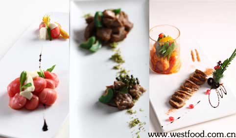 二等奖获得者唐远红的参赛菜品 本次表演赛星厨奖获得者是来自北京瑞居酒店的张玉生、二十一世纪饭店的刘延阁、捌零home西餐的李丙利、金海虹餐饮公司的赵鹏辉、卢卡斯意大利餐厅的张军、红太阳生态园的张树辉、明豪戴斯酒店的曾维建,万达铂尔曼酒店行政总厨郑宝利先生为其颁发奖杯及证书。 “第四届西餐食品饮品博览交流会”部分 本次活动特意为来宾安排了多种表演秀,有传统意式及花式咖啡秀、糖艺表演秀、花式调酒秀等 参加本次活动的参展企业有: